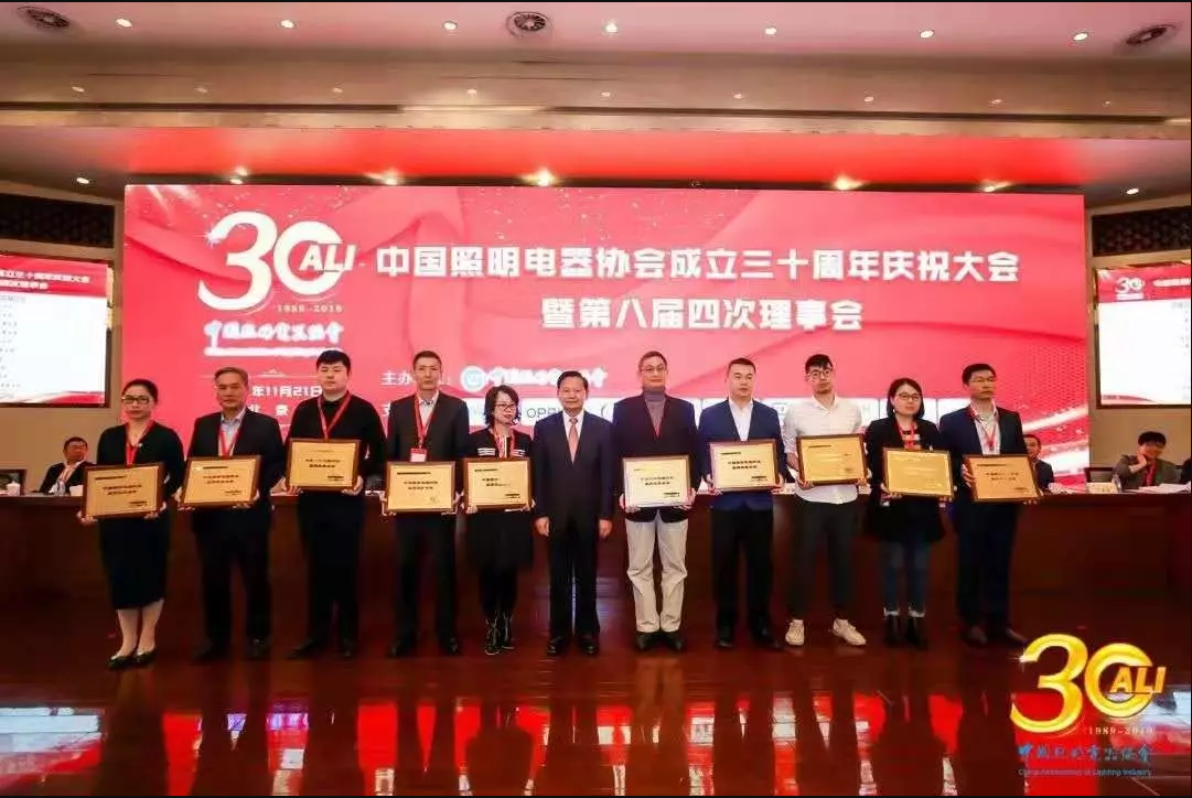 2019年11月21日,,中国照明电器协会成立三十周年之际,,对三十年来行业内涌现的优秀集体和先进个人进行表彰,,,共评选行业优秀集体181家,,,行业先进个人92名。。。。雀魂物联科技股份有限公司荣获大会集体奖项最高荣誉“中国照明电器行业品牌效益企业”,,,,董事长李江淮先生荣获大会个人奖项最高荣誉“中国照明电器行业杰出贡献奖”。。。